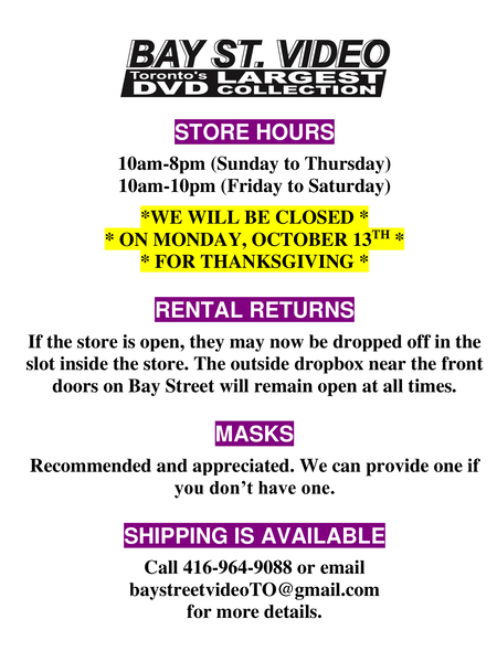 We have a Podcast! What new movies are coming out? What films have been remastered? What do you have to see? All the answers can be found on the weekly The Bay Street Video Podcast - Click for the link