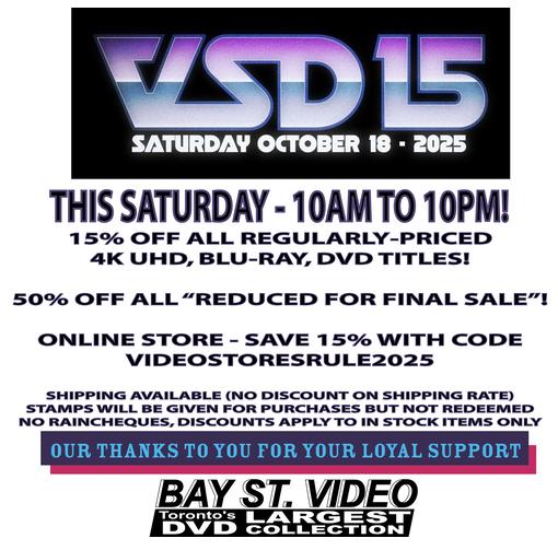 Sales: We're Toronto's ONLY retailer to stock tens-of-thousands of DVD, Blu-ray and 4K UltraHD titles for sale. Should you desire something not already in stock, we'll gladly (and promptly) bring it in for you at no extra charge.